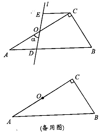 21. (10分)如图,在Rt△ABC中,∠ACB=90°, ∠B =60°,BC=2.点0是AC的中点,过点0的直线l从与AC重合的位置开始,绕点0作逆时针旋转,交AB边于点D.过点C作CE∥AB交直线l于点E,设直线l的旋转角为α.