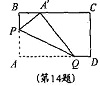 14.动手操作:在矩形纸片ABCD中,AB=3,AD=5.如图所示,折叠纸片,使点A落在BC边上的A’处,折痕为PQ,当点A’在BC边上移动时,折痕的端点P、Q也随之移动.若限定点P、Q分别在AB、AD边上移动,则点A’在BC边上可移动的最大距离为                               .
