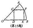 15.如图,在半径为,圆心角等于45°的扇形AOB内部作一个正方形CDEF,使点C在OA上,点D、E在OB上,点F在弧AB上,则阴影部分的面积为(结果保留π)                             .