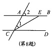 8、如图,AB//CD,CE平分∠ACD,若∠1=25°,那么∠2的度数是                             .